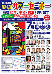 7月19日、20日、21日の3連休に第36回愛知サマーセミナーが開催されます。今年は初めて名古屋中学高等学校、至学館高校が会場になります。暑い名古屋の熱いサマセミに是非足をお運び下さい。