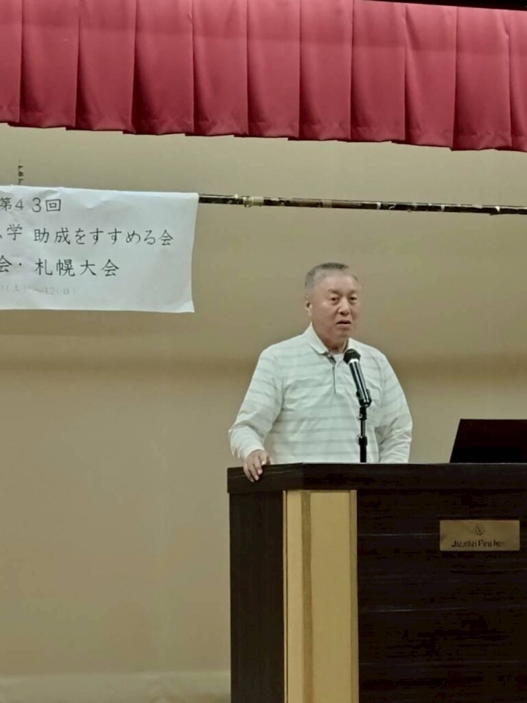 札幌大会 鈴木実行委員長の挨拶、全国私教連 山口中央執行委員長の基調報告、アイヌ文化研究者 平山裕人先生の記念講演で幕を開けました。基調報告では、目の前に引き寄せた「高校授業無償化」の今までの山あり谷ありの歩みを振り返り、それは半世紀を超えて父母・生徒・教職員の三者共同ですすめてきた私学助成運動が築いてきた到達点であること、さらに「行き届いた教育条件」を保障する経常費助成の拡充をめざす運動の必要性を参加者一同で確認しました。記念講演は、七つの扉からアイヌ史を紐解く、とても楽しく分かりやすいものでした。